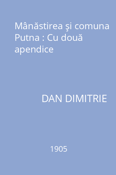 | Titlu | Mânăstirea şi comuna Putna |