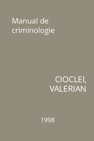 | Titlu | Manual de criminologie |
