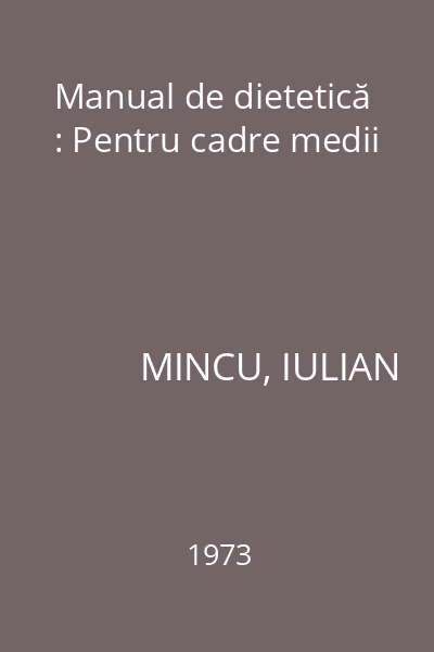 | Titlu | Manual de dietetică : Pentru cadre medii |