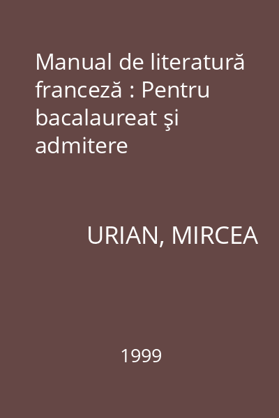 | Titlu | Manual de literatură franceză : Pentru bacalaureat şi admitere |