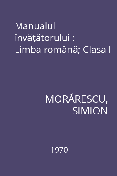 | Titlu | Manualul învăţătorului : Limba română; Clasa I |