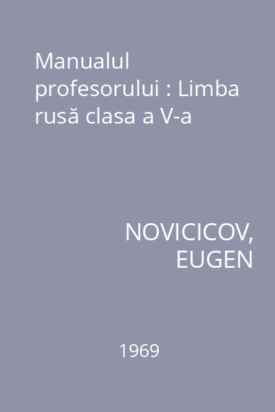 | Titlu | Manualul profesorului : Limba rusă clasa a V-a |