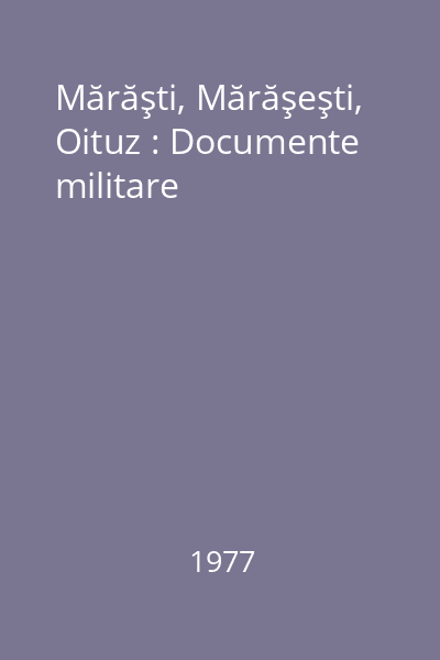 | Titlu | Mărăşti, Mărăşeşti, Oituz : Documente militare |