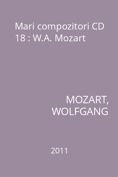 | Titlu | Mari compozitori CD 18 : W.A. Mozart |