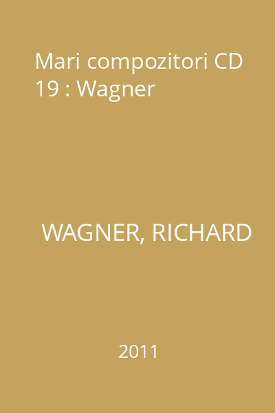 | Titlu | Mari compozitori CD 19 : Wagner |
