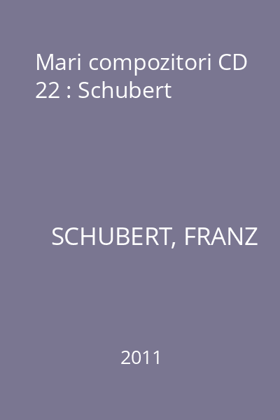 | Titlu | Mari compozitori CD 22 : Schubert |