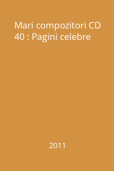 | Titlu | Mari compozitori CD 40 : Pagini celebre |