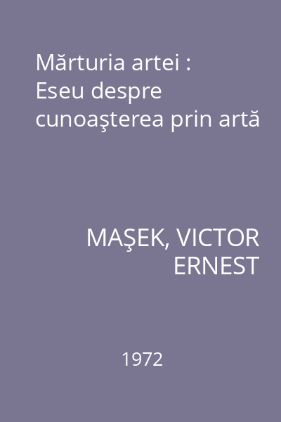 | Titlu | Mărturia artei : Eseu despre cunoaşterea prin artă |