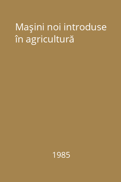 | Titlu | Maşini noi introduse în agricultură |
