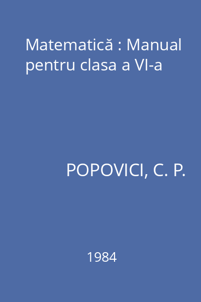 | Titlu | Matematică : Manual pentru clasa a VI-a |