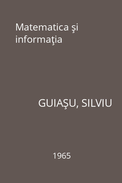 | Titlu | Matematica şi informaţia |