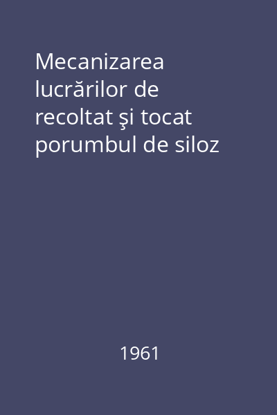 | Titlu | Mecanizarea lucrărilor de recoltat şi tocat porumbul de siloz |
