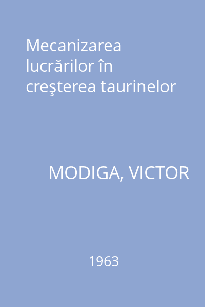 | Titlu | Mecanizarea lucrărilor în creşterea taurinelor |