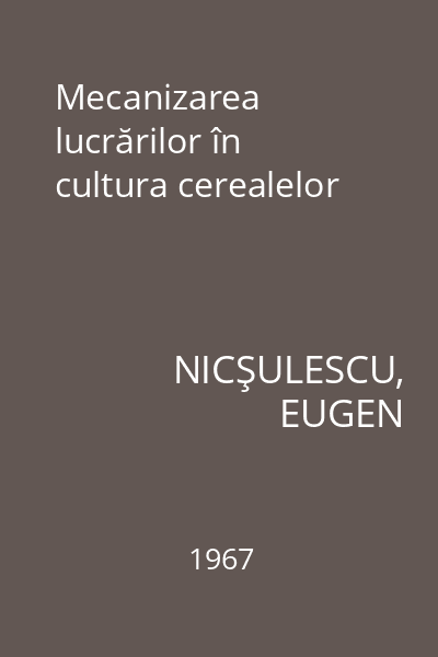 | Titlu | Mecanizarea lucrărilor în cultura cerealelor |