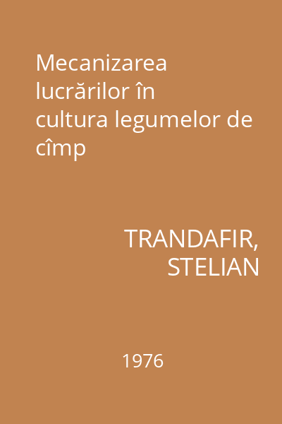 | Titlu | Mecanizarea lucrărilor în legumicultură |