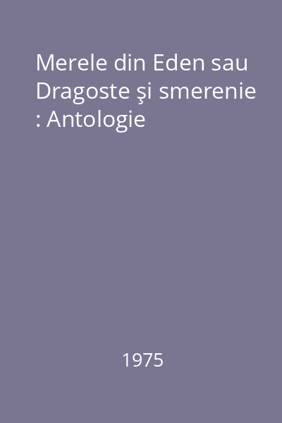 | Titlu | Merele din Eden sau Dragoste şi smerenie : Antologie |