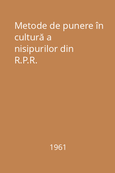 | Titlu | Metode de punere în cultură a nisipurilor din R.P.R. |