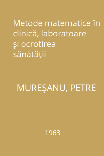 | Titlu | Metode matematice în clinică, laboratoare şi ocrotirea sănătăţii |