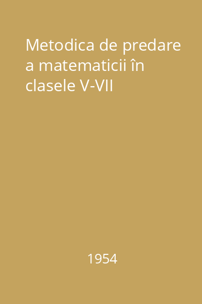 | Titlu | Metodica de predare a matematicii în clasele V-VII |