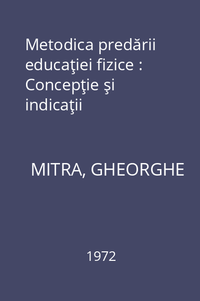 | Titlu | Metodica predării educaţiei fizice : Concepţie şi indicaţii |