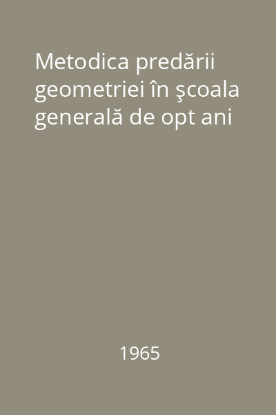 | Titlu | Metodica predării geometriei în şcoala generală de opt ani |