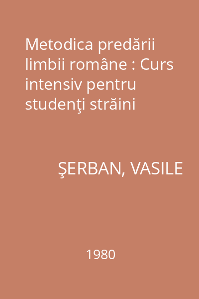 | Titlu | Metodica predării limbii române : Curs intensiv pentru studenţi străini |