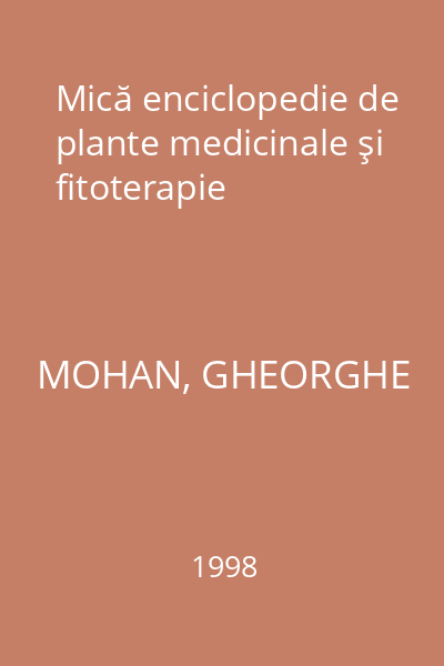 | Titlu | Mică enciclopedie de plante medicinale şi fitoterapie |