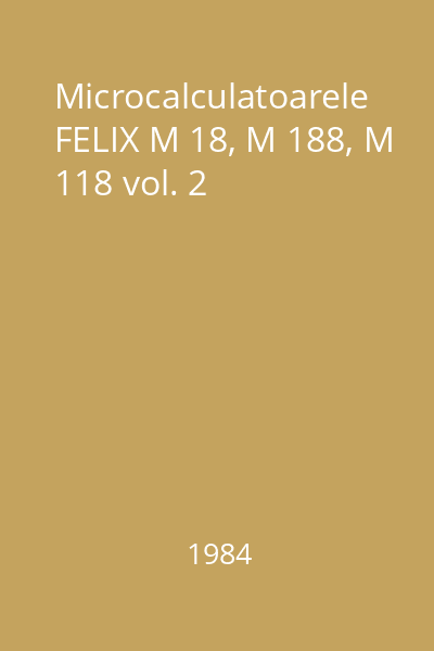 | Titlu | Microcalculatoarele FELIX M 18, M 188, M 118 vol. 2 |