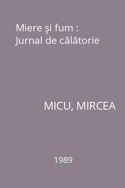 | Titlu | Miere şi fum : Jurnal de călătorie |