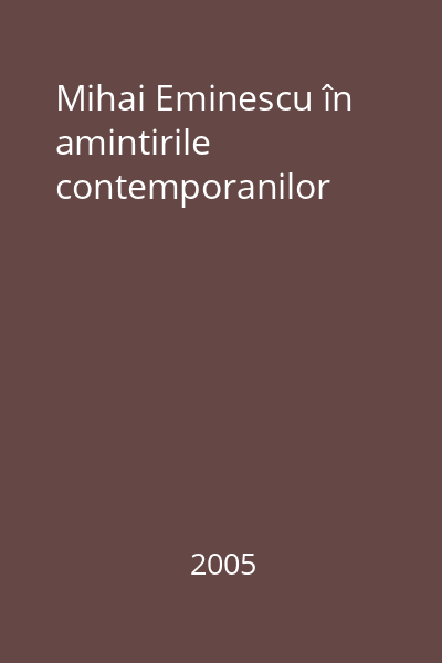 | Titlu | Mihai Eminescu în amintirile contemporanilor |
