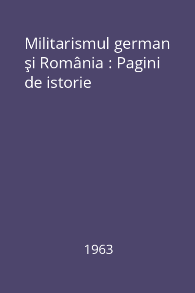 | Titlu | Militarismul german şi România : Pagini de istorie |