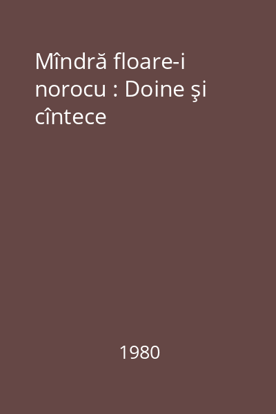 | Titlu | Mîndră floare-i norocu : Doine şi cîntece |