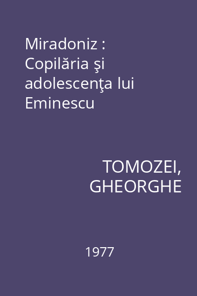 | Titlu | Miradoniz : Copilăria şi adolescenţa lui Eminescu |
