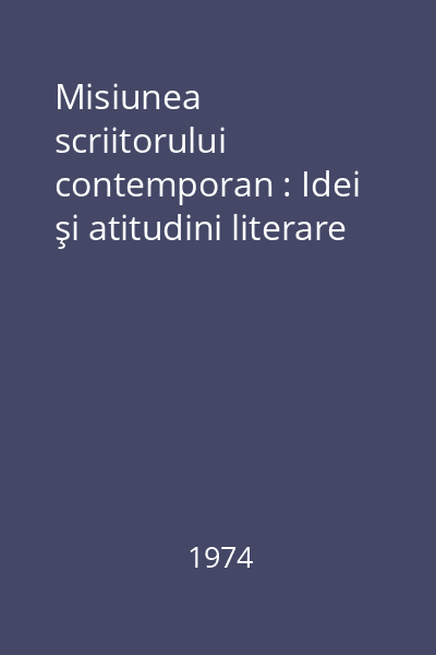 | Titlu | Misiunea scriitorului contemporan : Idei şi atitudini literare |