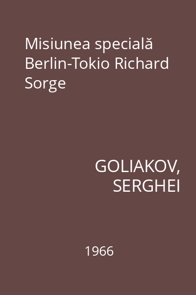 | Titlu | Misiunea specială Berlin-Tokio Richard Sorge |