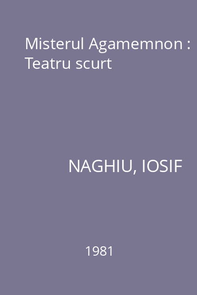 | Titlu | Misterul Agamemnon : Teatru scurt |