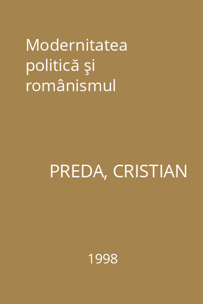 | Titlu | Modernitatea politică şi românismul |