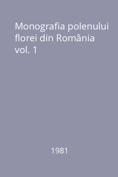 | Titlu | Monografia polenului florei din România vol. 1 |