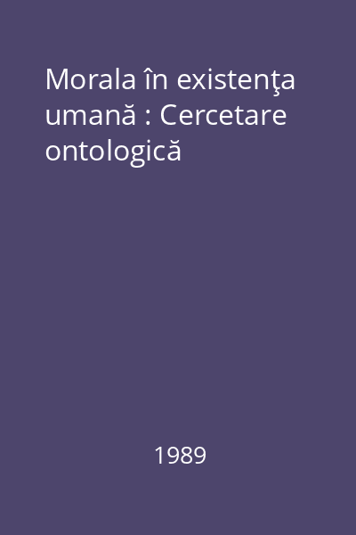 | Titlu | Morala în existenţa umană : Cercetare ontologică |