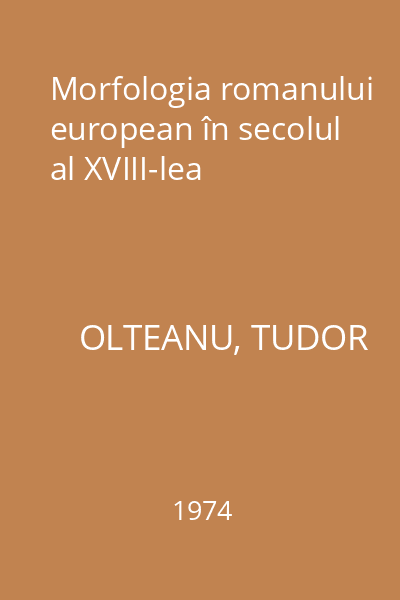 | Titlu | Morfologia romanului european în secolul al XVIII-lea |