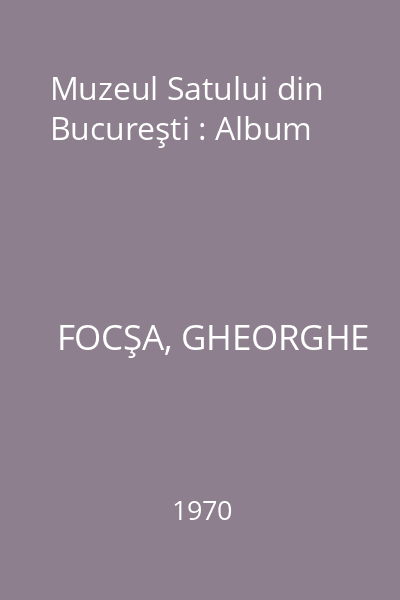 | Titlu | Muzeul Satului din Bucureşti : Album |