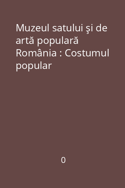 | Titlu | Muzeul satului şi de artă populară România : Costumul popular |