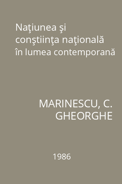 | Titlu | Naţiunea şi conştiinţa naţională în lumea contemporană |