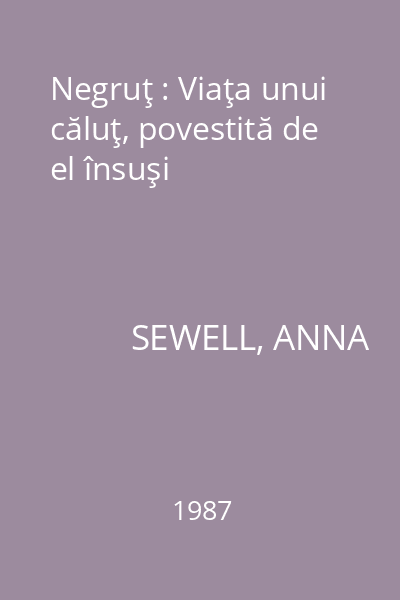 | Titlu | Negruţ : Viaţa unui căluţ, povestită de el însuşi |