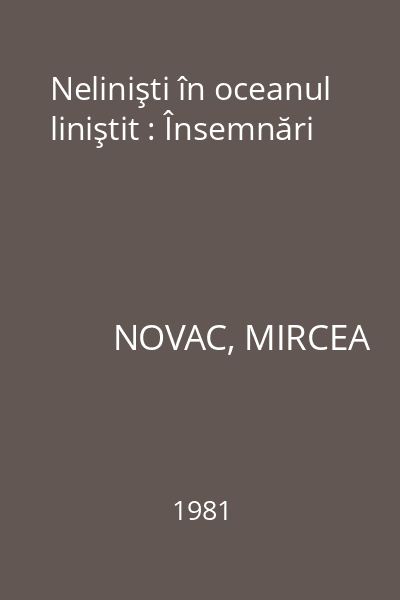 | Titlu | Nelinişti în oceanul liniştit : Însemnări |