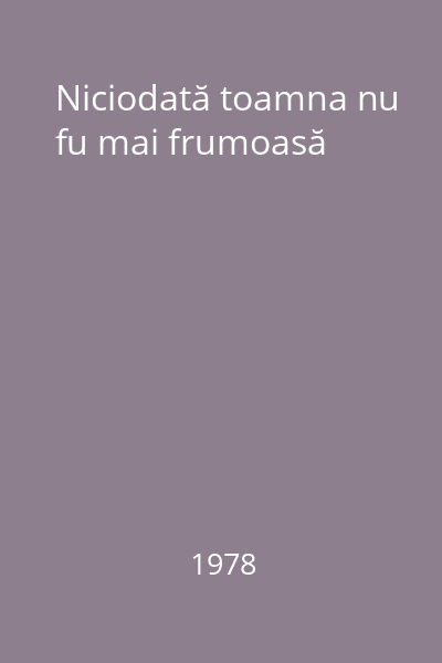 | Titlu | Niciodată toamna nu fu mai frumoasă |
