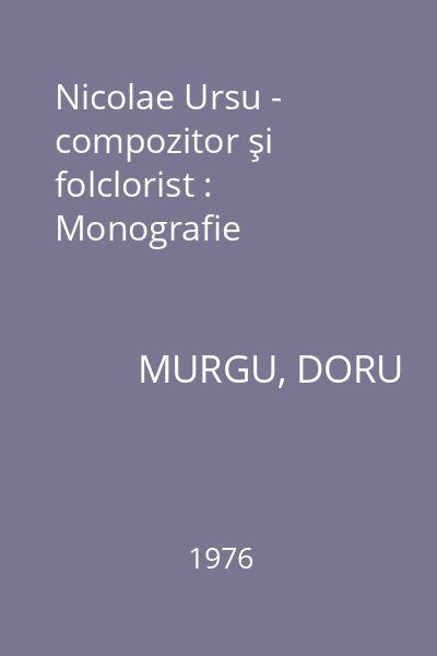 | Titlu | Nicolae Ursu - compozitor şi folclorist : Monografie |