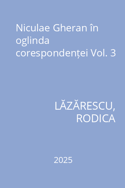 | Titlu | Niculae Gheran în oglinda corespondenței Vol. 3 |