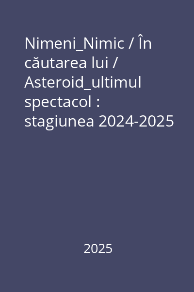 | Titlu | Nimeni_Nimic / În căutarea lui / Asteroid_ultimul spectacol : stagiunea 2024-2025 |