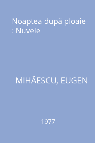 | Titlu | Noaptea după ploaie : Nuvele |